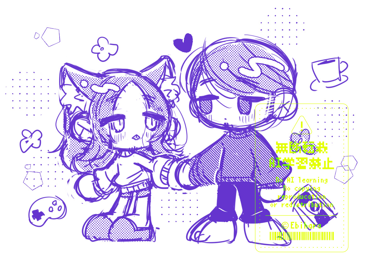 あけおめ的なイラスト描こうとおもたら特に思い浮かばなくて二人のSDキャラらくがきでも描いてみた